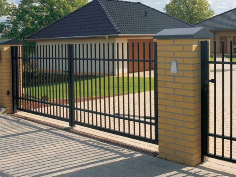 • Конструкция откатных ворот с кирпичными столбами